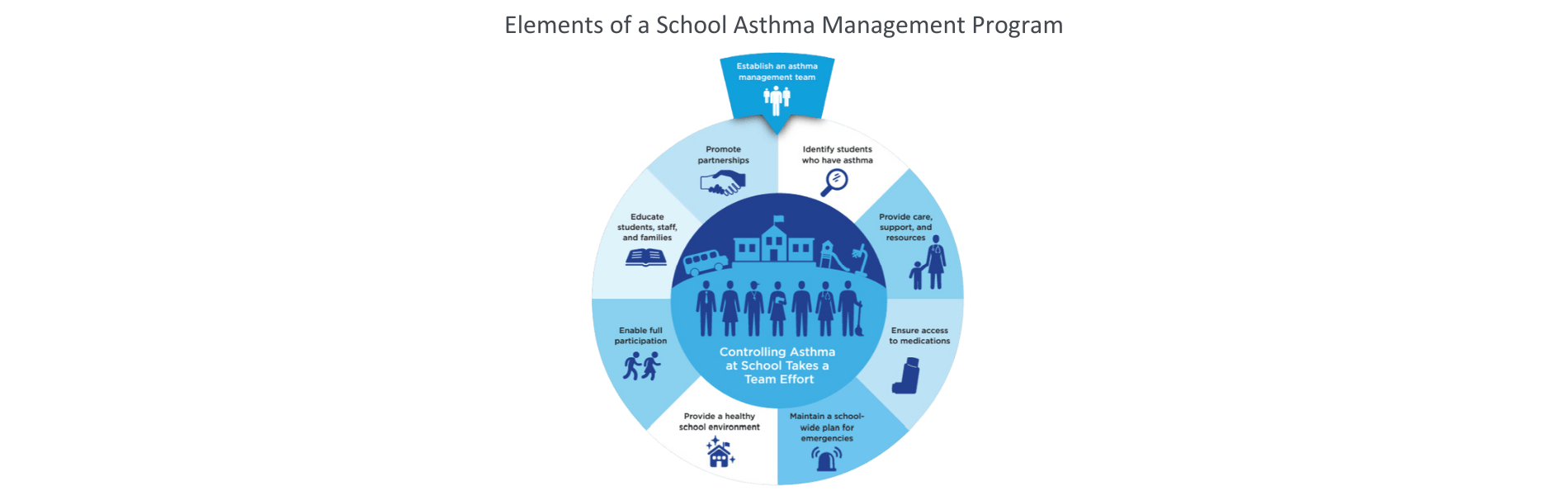The HHS recommends establishing a team of staff across the district to help develop, implement, and monitor the asthma management program.