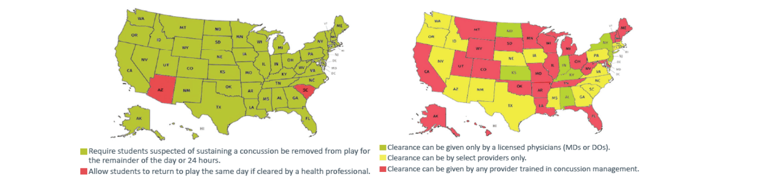 The maps below outline some of the differences in concussion laws across the states: